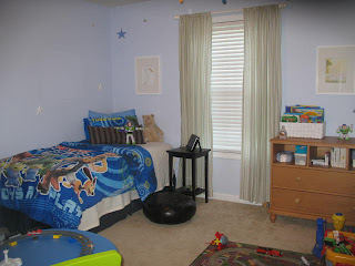Aw...I can't believe he's in a big boy bed. We'll be transitioning this for Rebekah later this year, around Christmas. We're moving both of the girls into the same room to free up the extra bedroom for visitors.